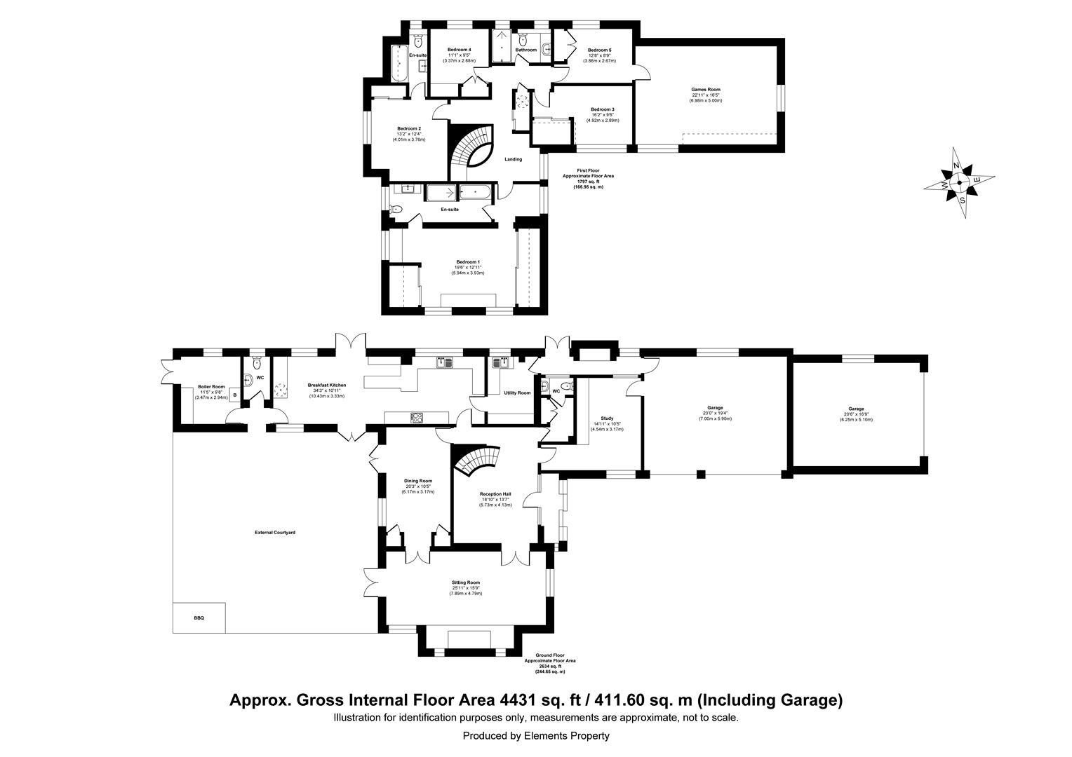 Accommodation Ground floor: Covered porch entrance Grand reception hall Study with access to garage Guest WC and cloakroom Utility room Dining room Sitting room