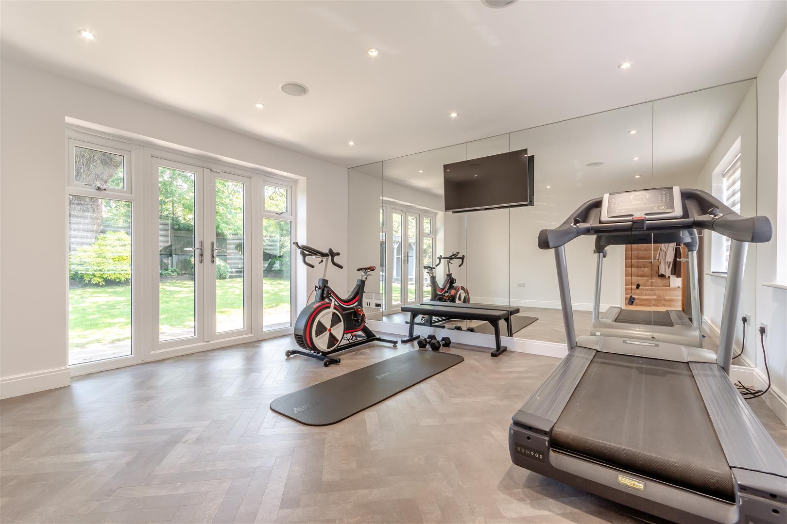 Entrance hallway,Gym with additional entrance from outside, Cinema Room, Drawing room, Kitchen, Utility , Guest Cloakroom , Study, Airing cupboard, Storage cupboard, Stairs leading to first floor