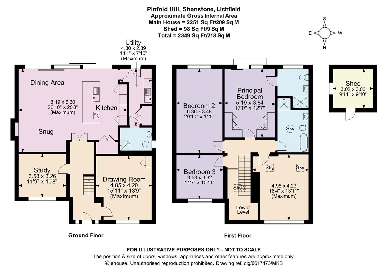 Ground Floor: Entrance hallway, guest cloakroom, drawing room, study, open plan kitchen/dining/snug, utility.