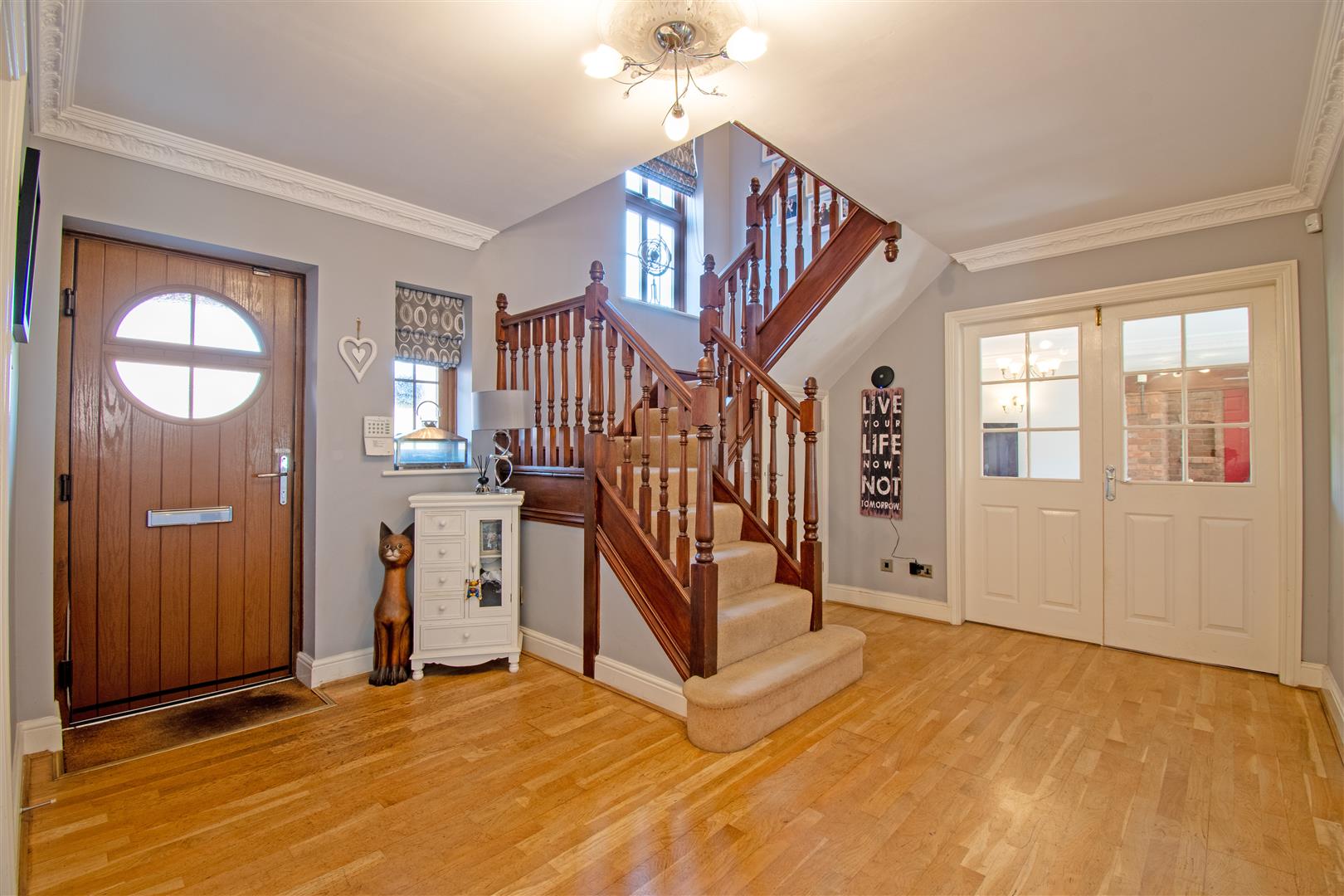 Built in 2000, this impressive five-bedroom family home offers over 3,700 sq. ft. of elegant living space in a peaceful Upper Longdon setting. The property is beautifully designed, with a welcoming reception hall, feature staircase, and parquet-style flooring leading to a series of light-filled reception rooms.
