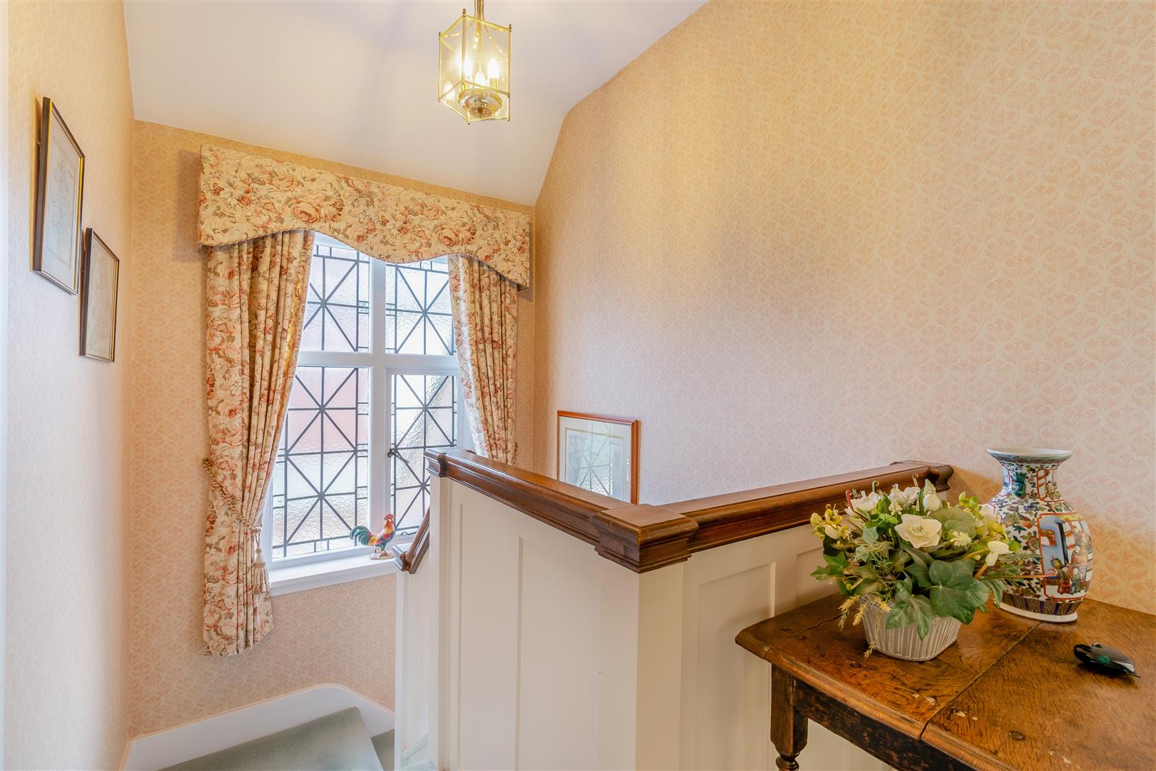 •Manicured lawned front garden with mature shrubs and trees for added privacy