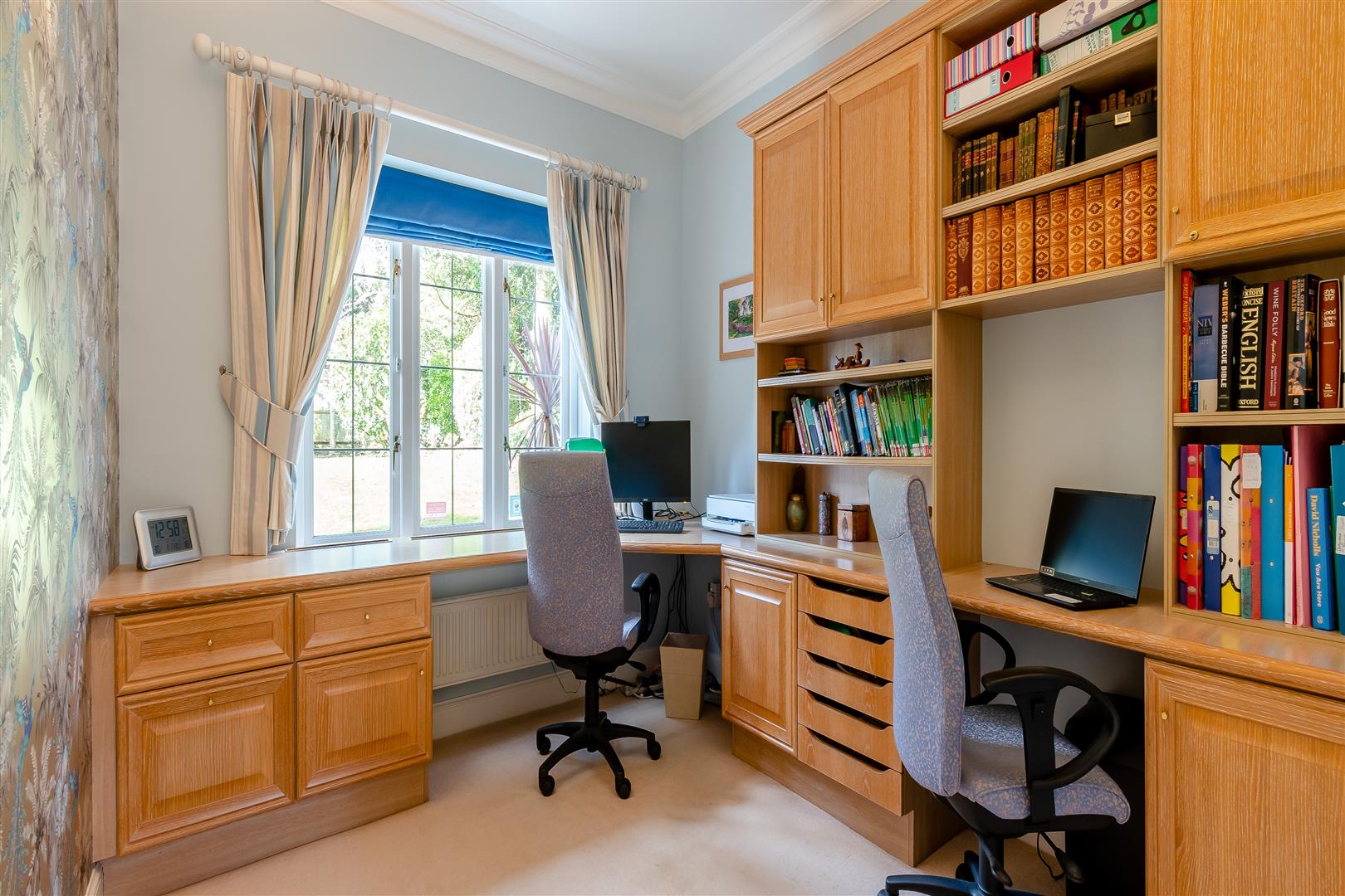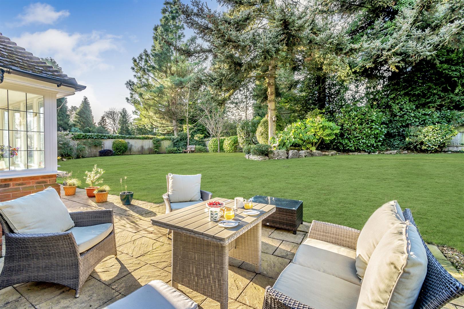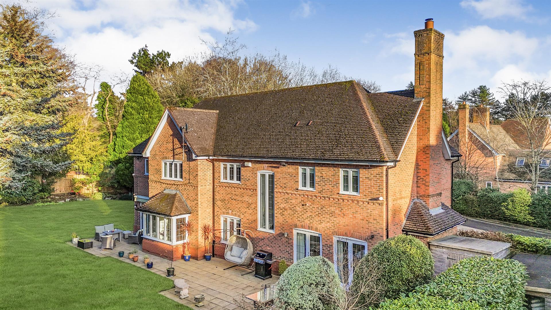 With NO UPWARD CHAIN ‘The Grange’ occupies a position towards the head of the development and enjoys a plot of approximately one third of an acre. It is a modern detached two-story home with five-bedrooms. The house spans over 3,400 square feet, and offers generous living space with potential for extension (subject to planning). The mature landscaped garden wraps around the property and is privately screened by trees as it backs onto the large and somewhat distant gardens of Luttrell Road.