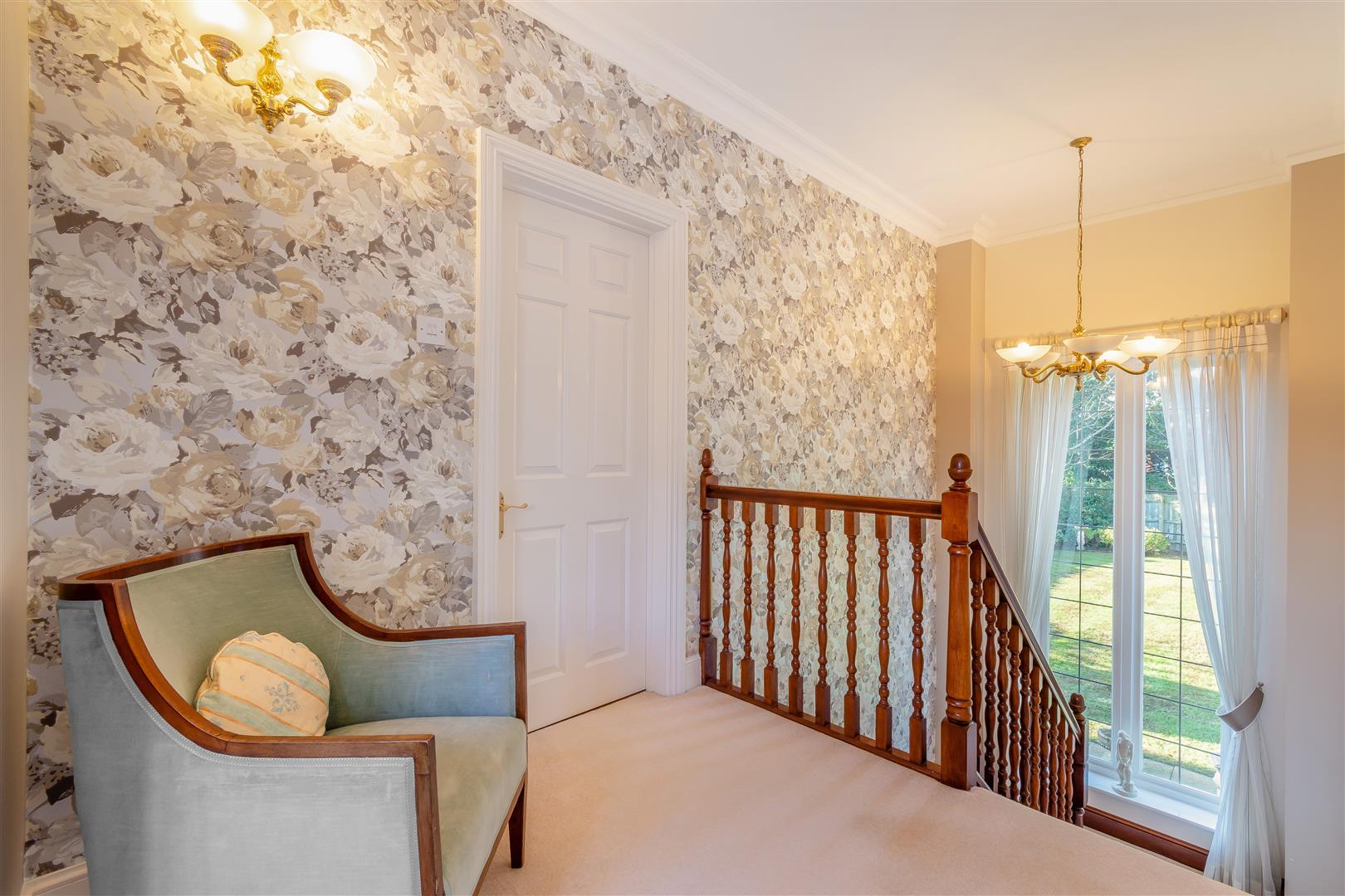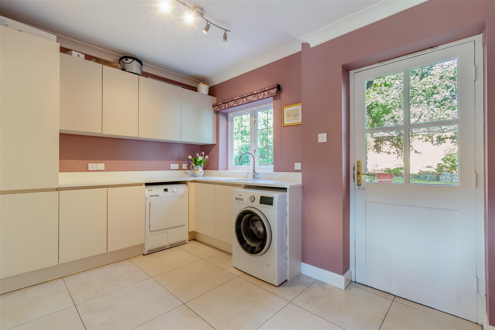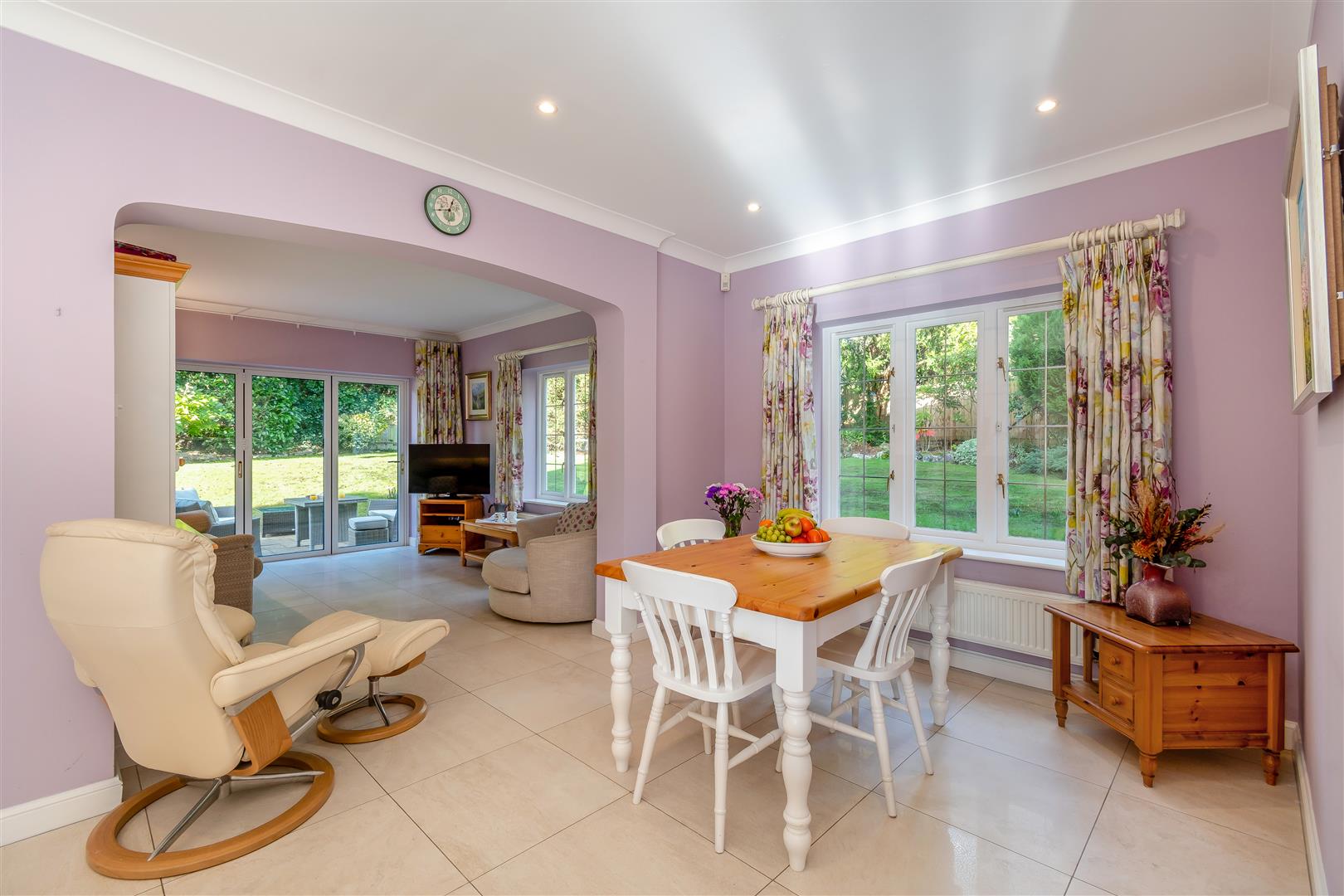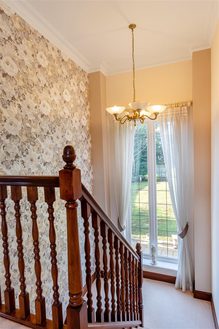 With NO UPWARD CHAIN ‘The Grange’ occupies a position towards the head of the development and enjoys a plot of approximately one third of an acre. It is a modern detached two-story home with five-bedrooms. The house spans over 3,400 square feet, and offers generous living space with potential for extension (subject to planning). The mature landscaped garden wraps around the property and is privately screened by trees as it backs onto the large and somewhat distant gardens of Luttrell Road.