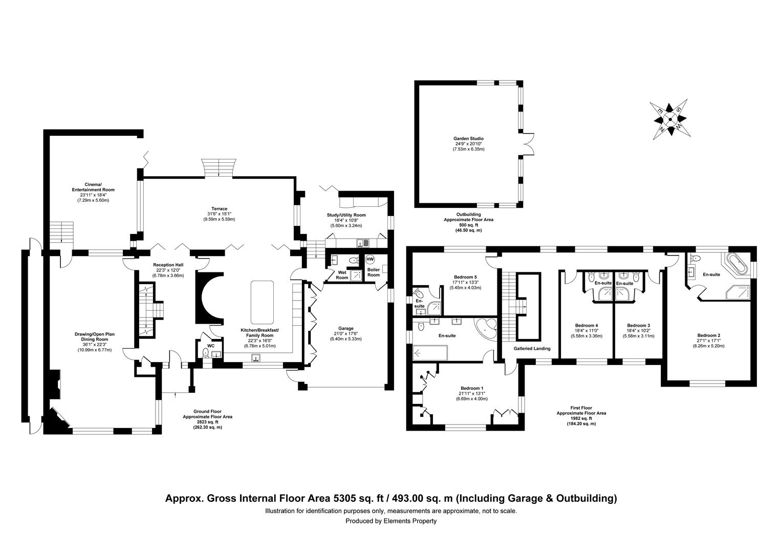 Approximate Gross Internal Area: 5305 sq. ft/493 sq. m