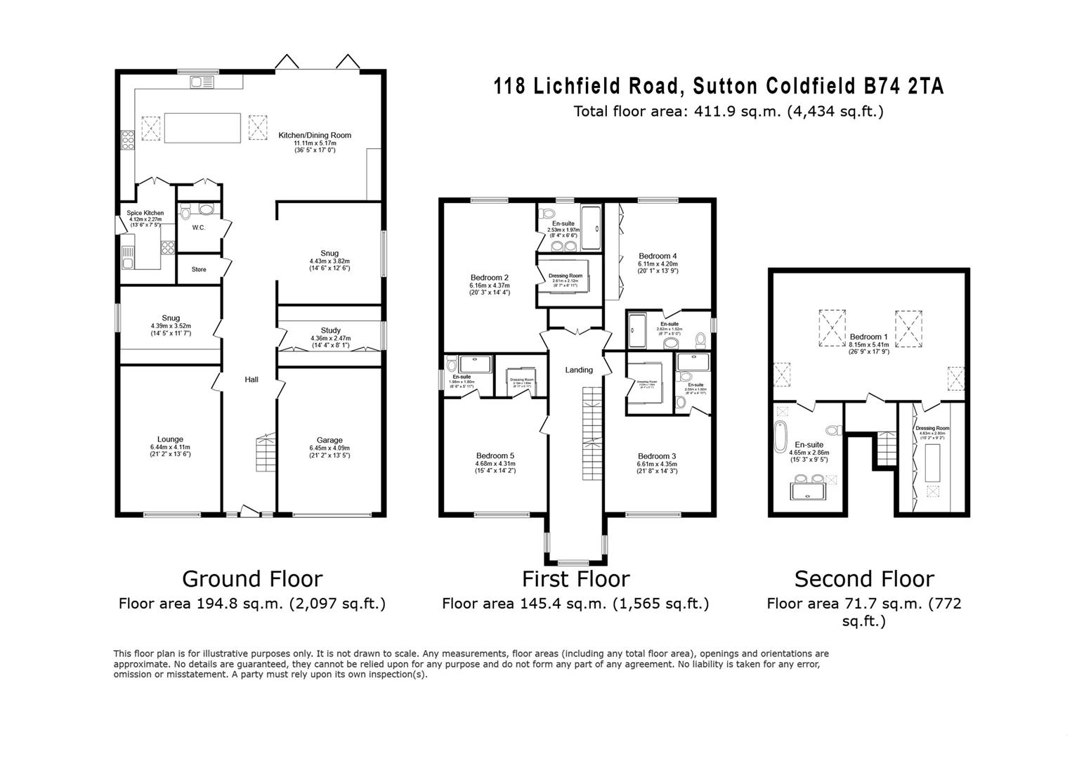 Approximate total floor area: 4434 Sq.Ft or 411.9 Sq. Meters