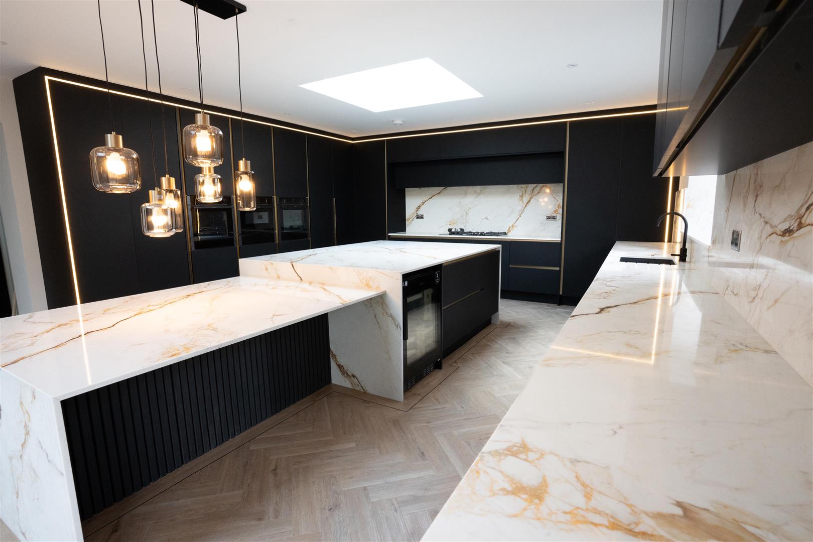 - Showstopping kitchen/dining/living spaces with statement island, hidden spice kitchen, media walls and designer lighting