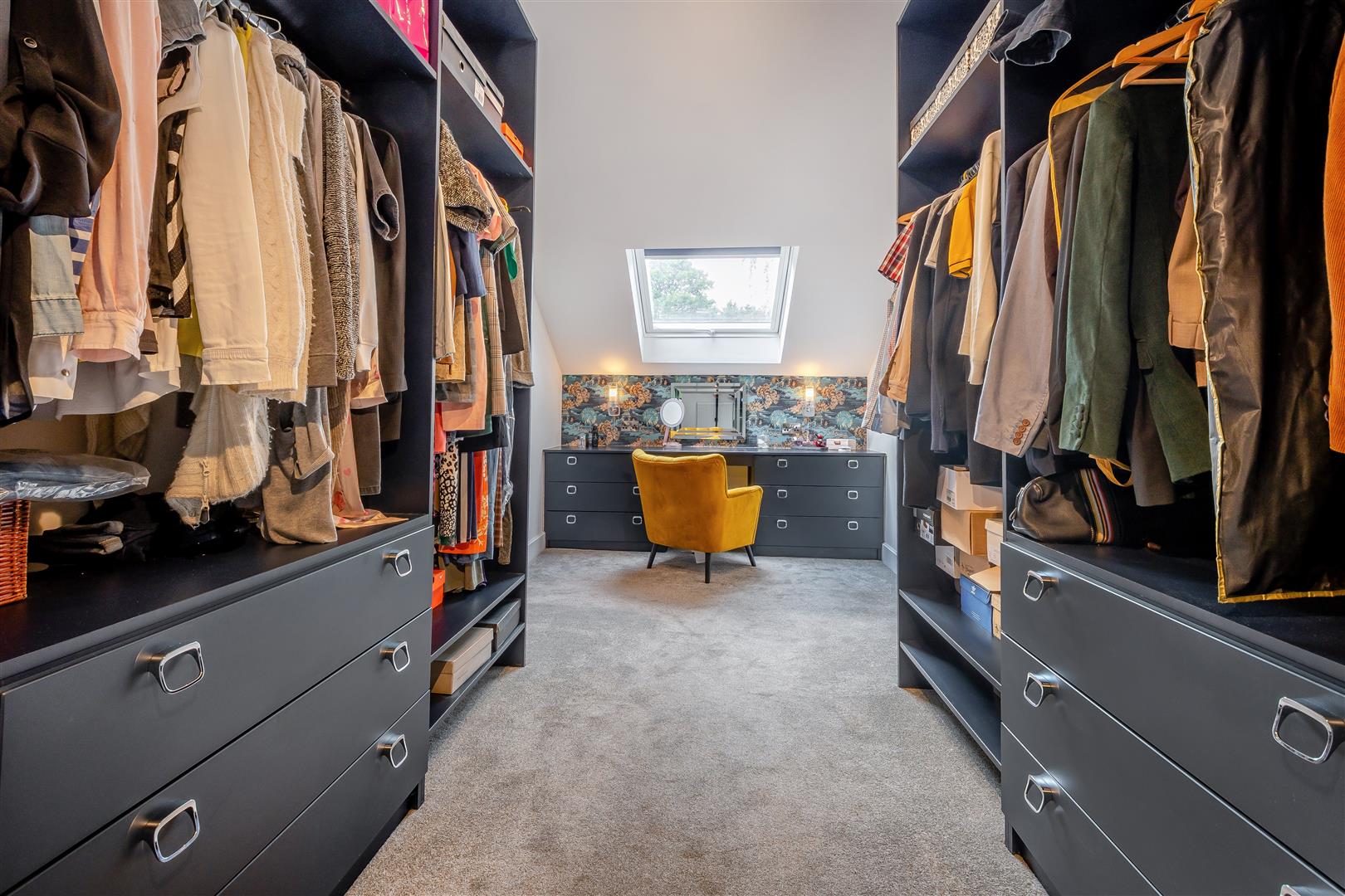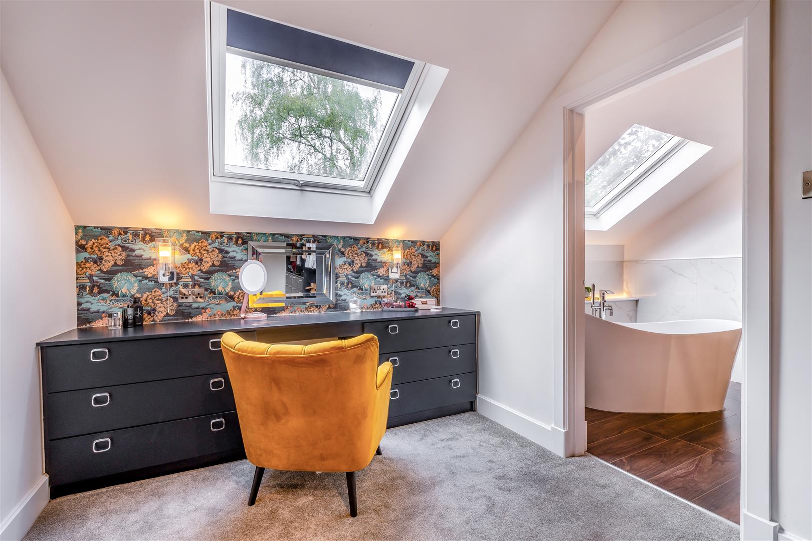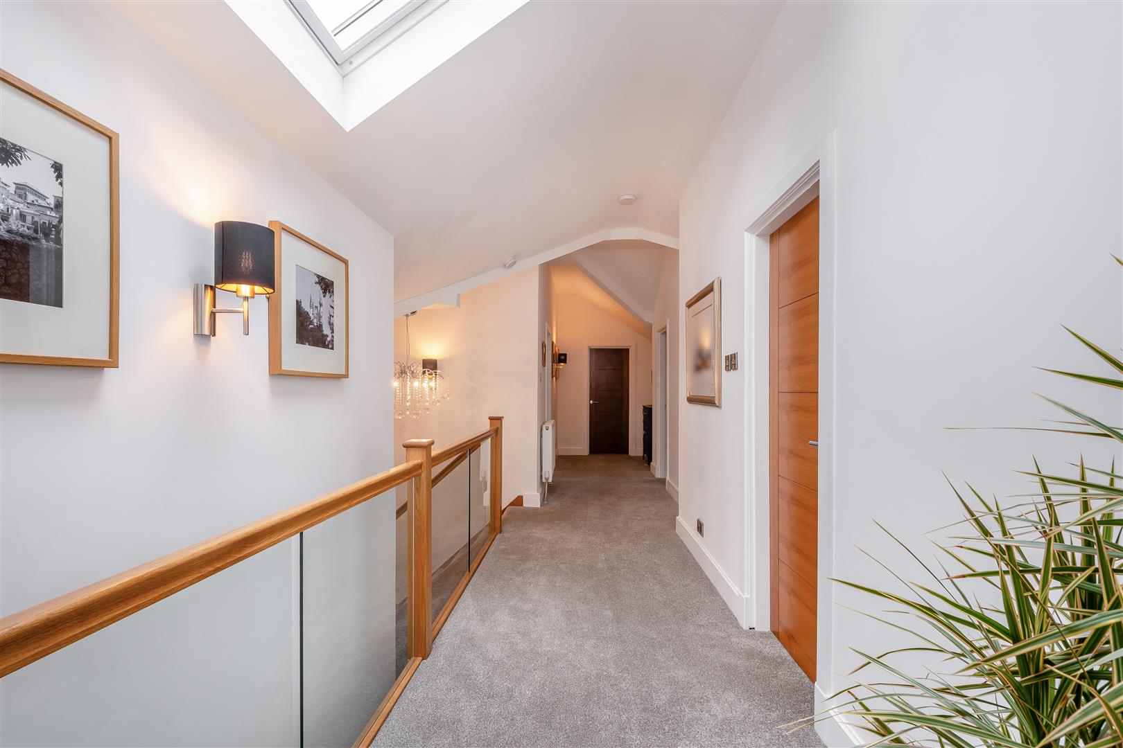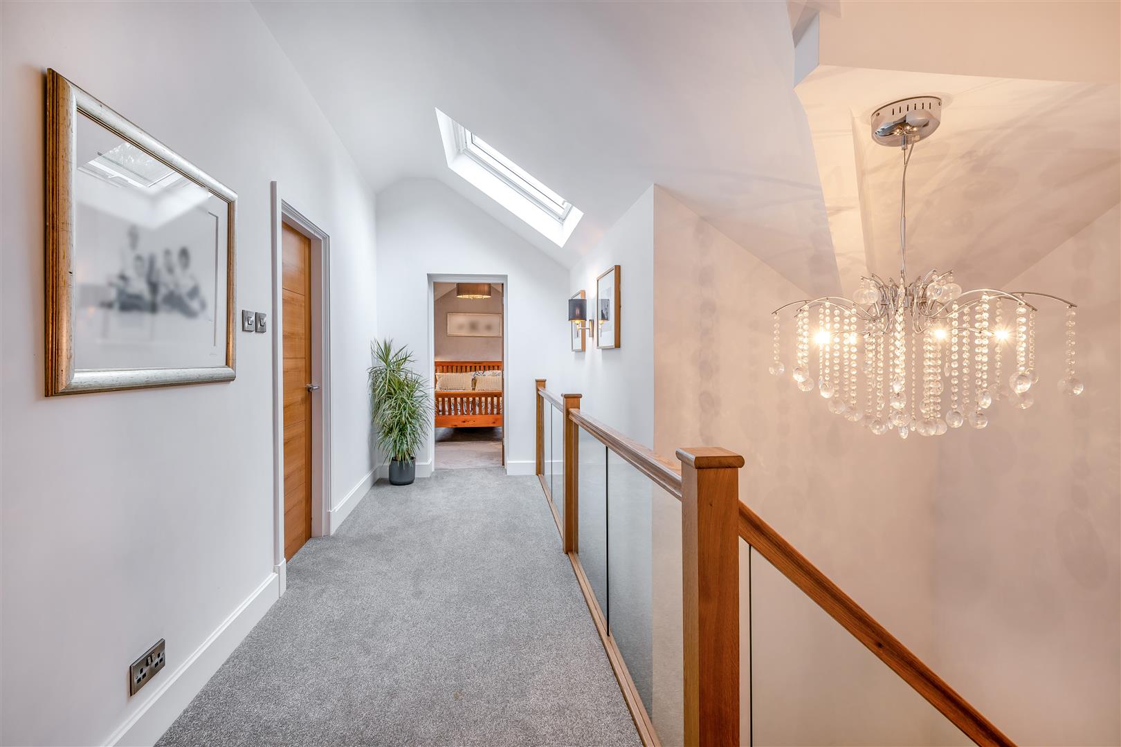 Upstairs, the landing leads to a hallway that connects four generously sized bedrooms. The principal bedroom benefits from its own ensuite and a private dressing room. Bedroom two also enjoys an ensuite, while bedrooms three and four are served by a stylish family bathroom.