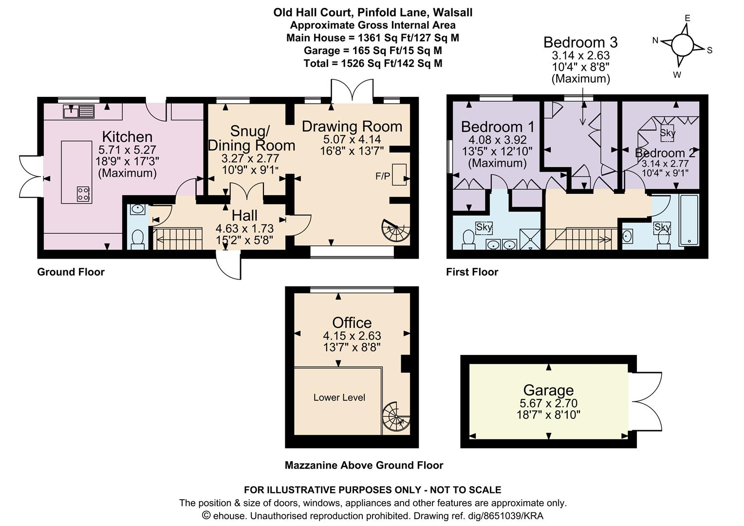 • Large stunning office space overlooking the drawing room – versatile and easily convertible into a fourth bedroom if required