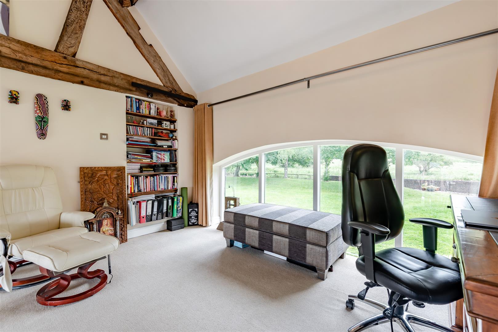 • Principal bedroom with vaulted ceiling, oak beams, dual aspect windows with countryside views and a hidden en-suite