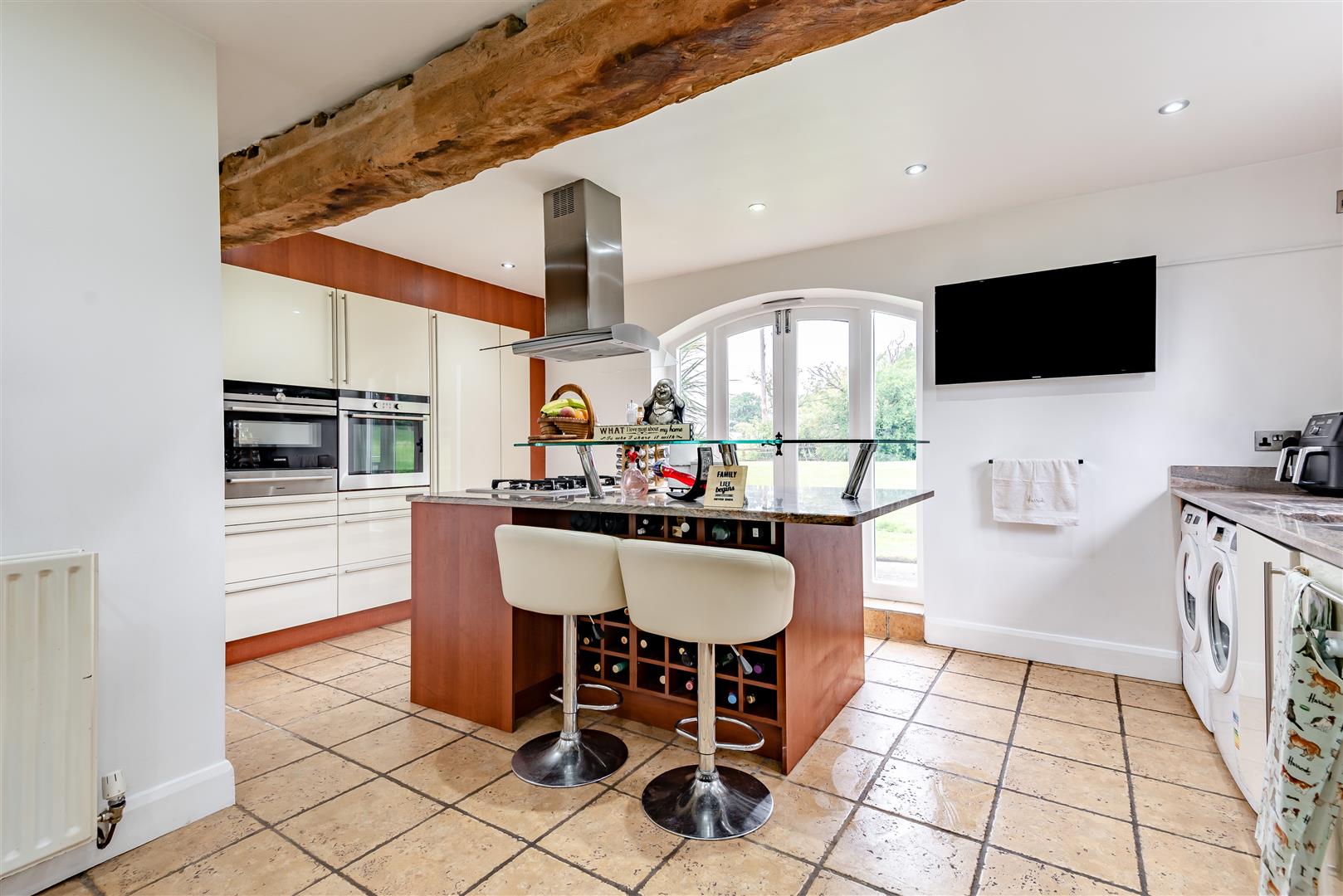 • Characterful and contemporary kitchen with granite worktops, large central island with seating and French doors opening to the garden with far reaching countryside views