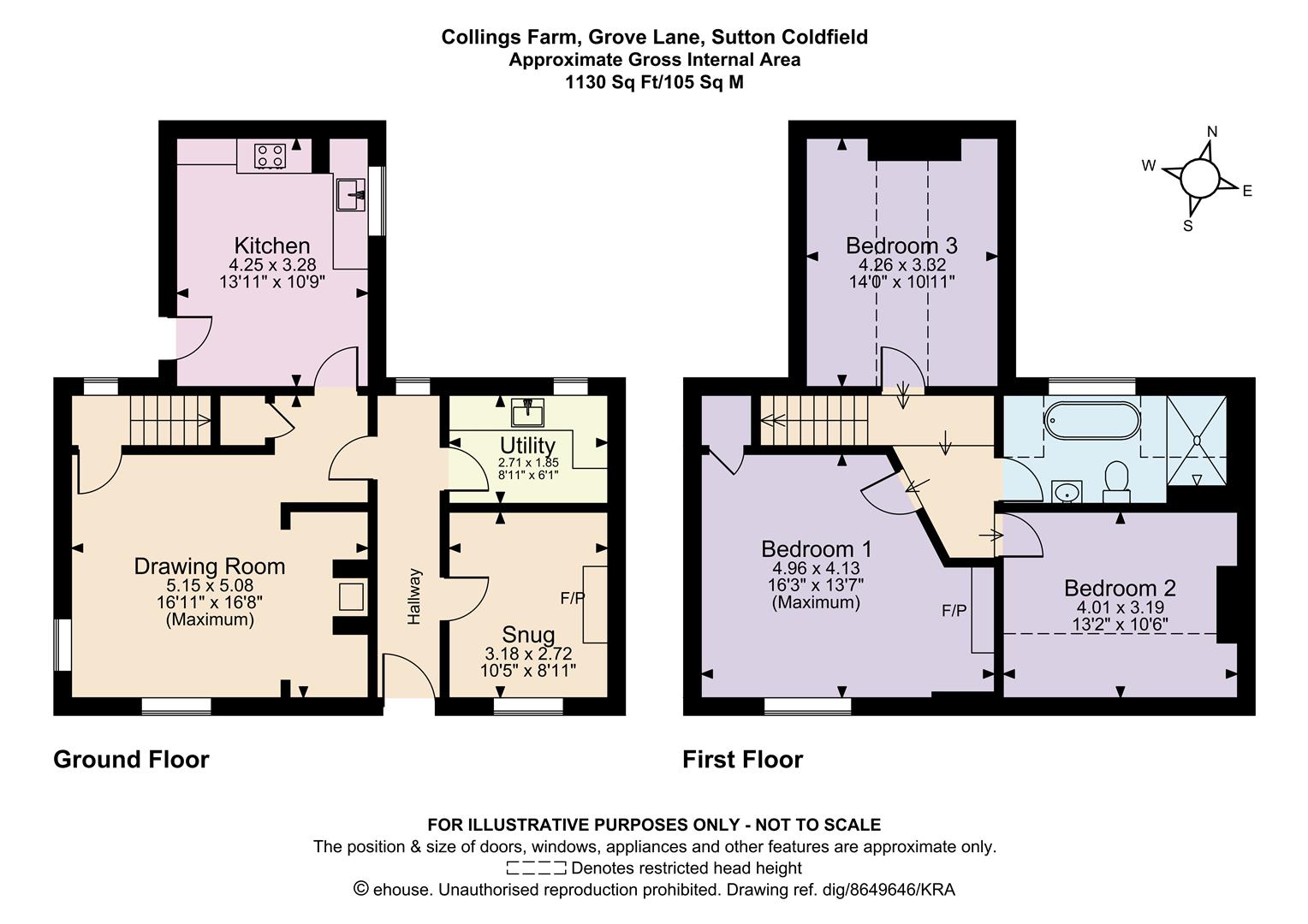 Approximate total floor area: 1,130 sq ft / 105 sq m