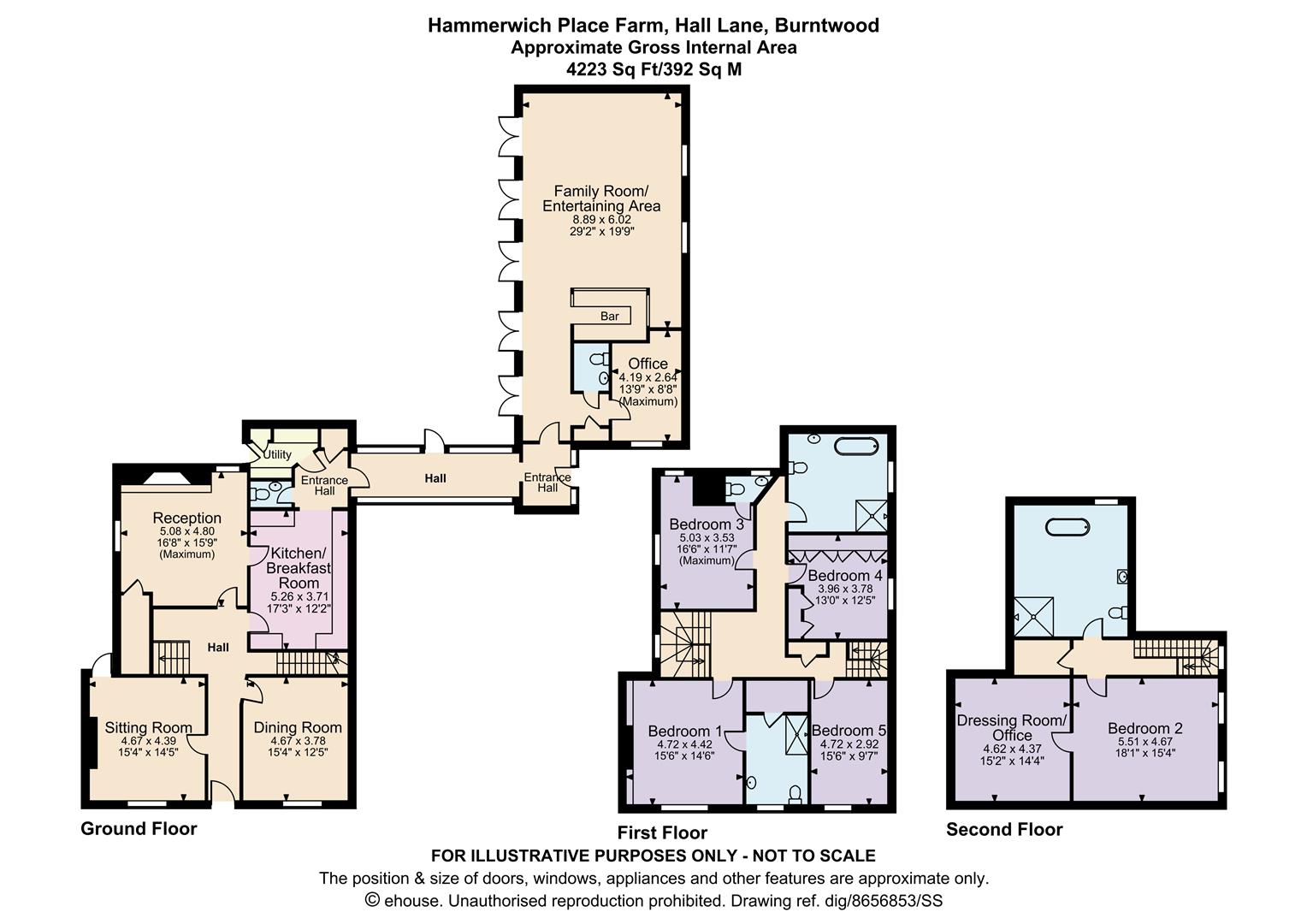 Approximate total floor area:4223 Sq. Ft or 392.4 Sq.Meters