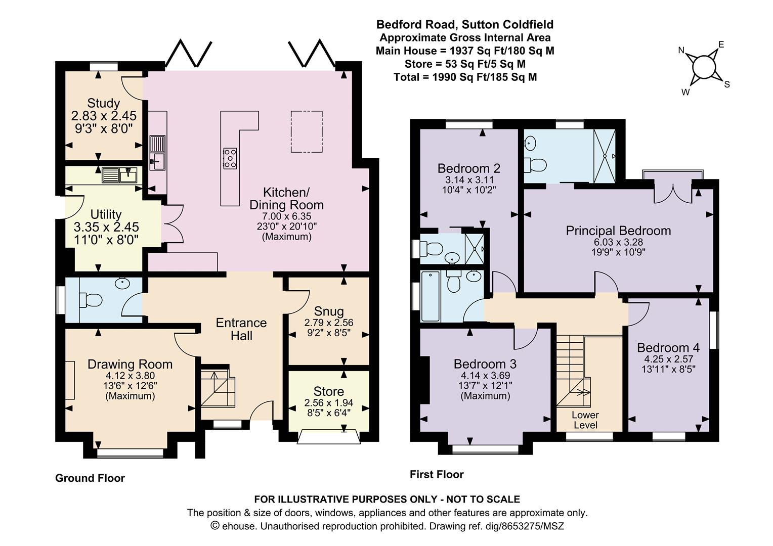 •Bedrooms number three and four overlooking the front of the property