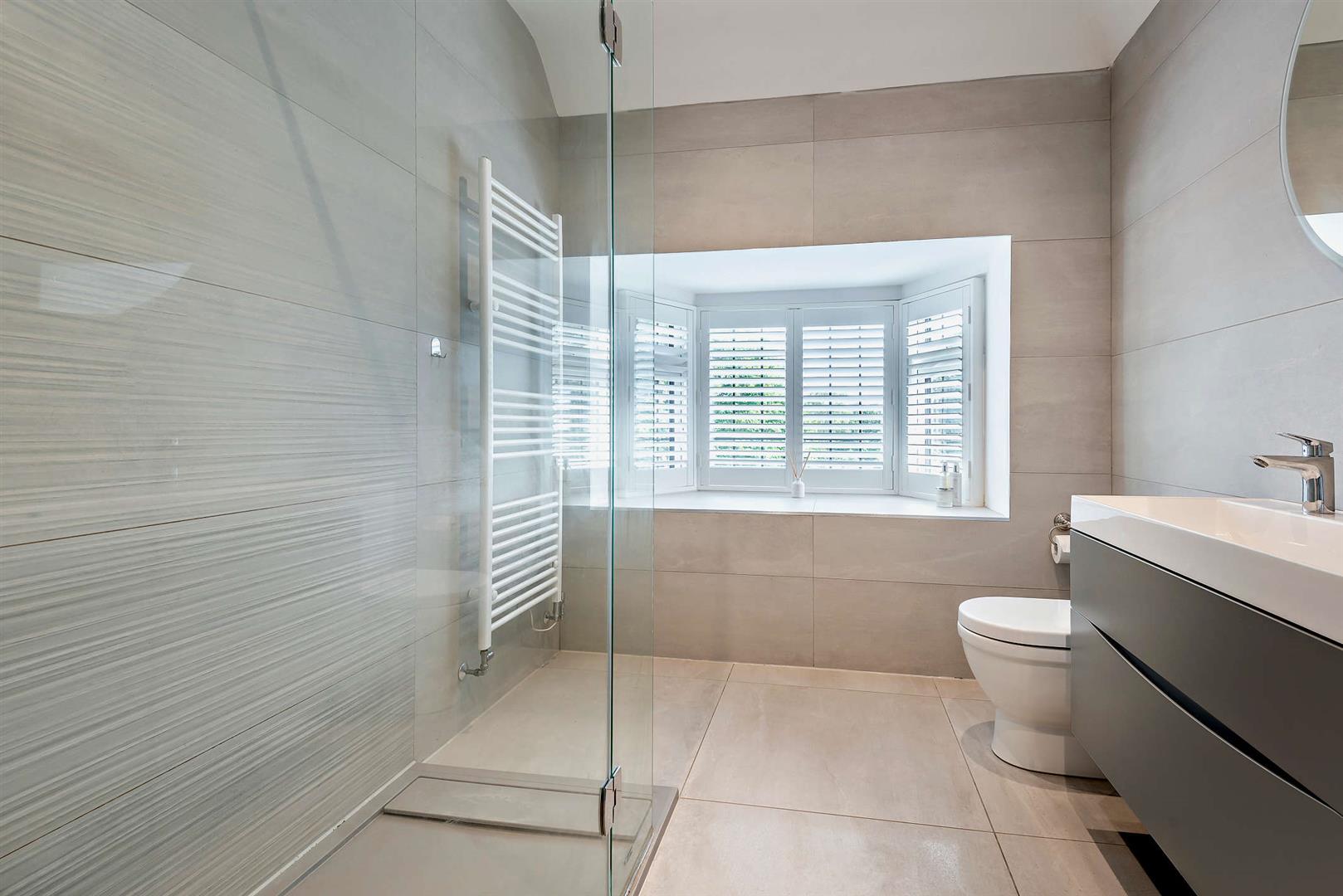 •Principal Bedroom with views of the rear garden, having walk-in dressing room with built-in closet, then through to Ensuite shower room with bay window overlooking the front of the property