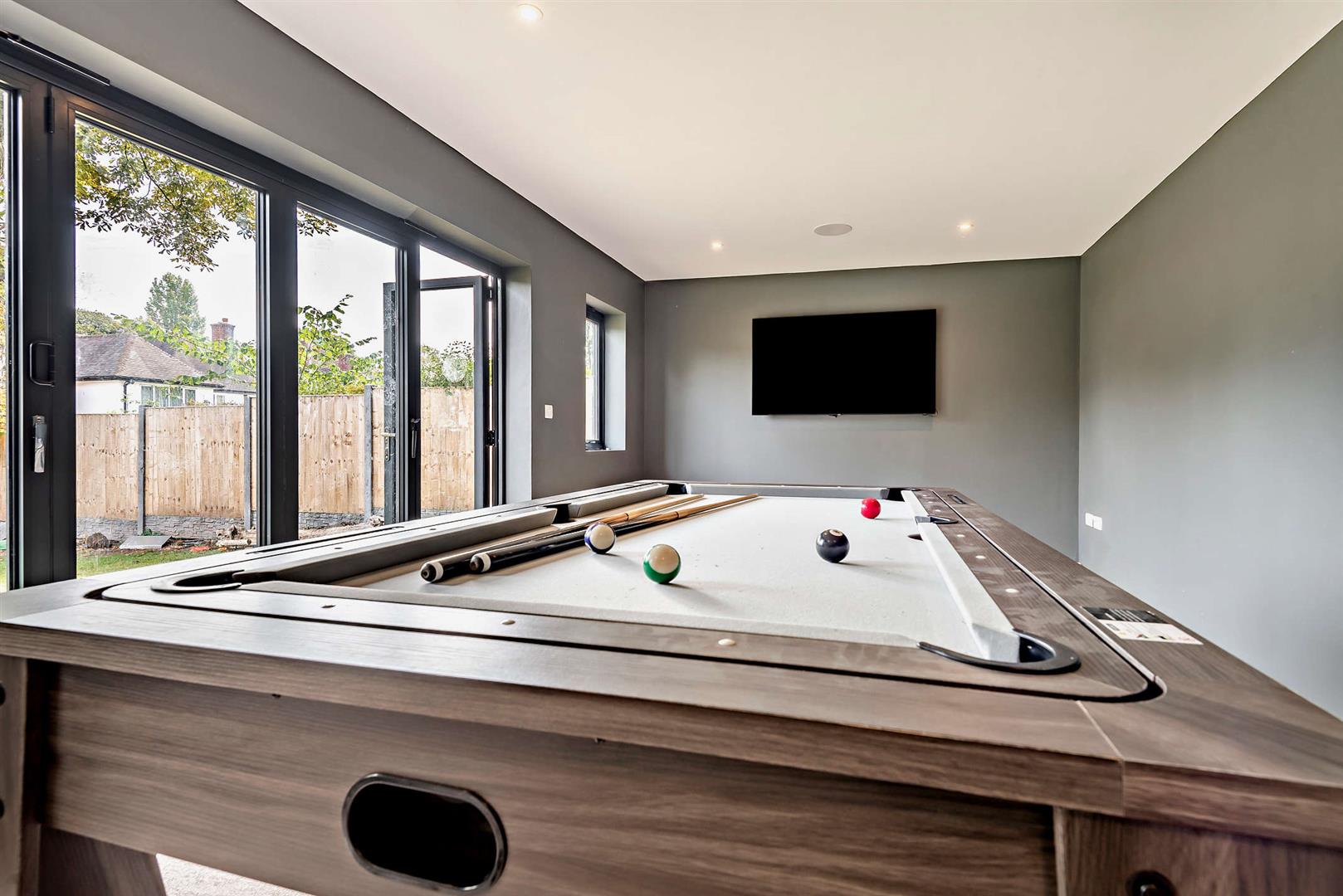 •Garden room/Games room with two bi-folding doors and store room