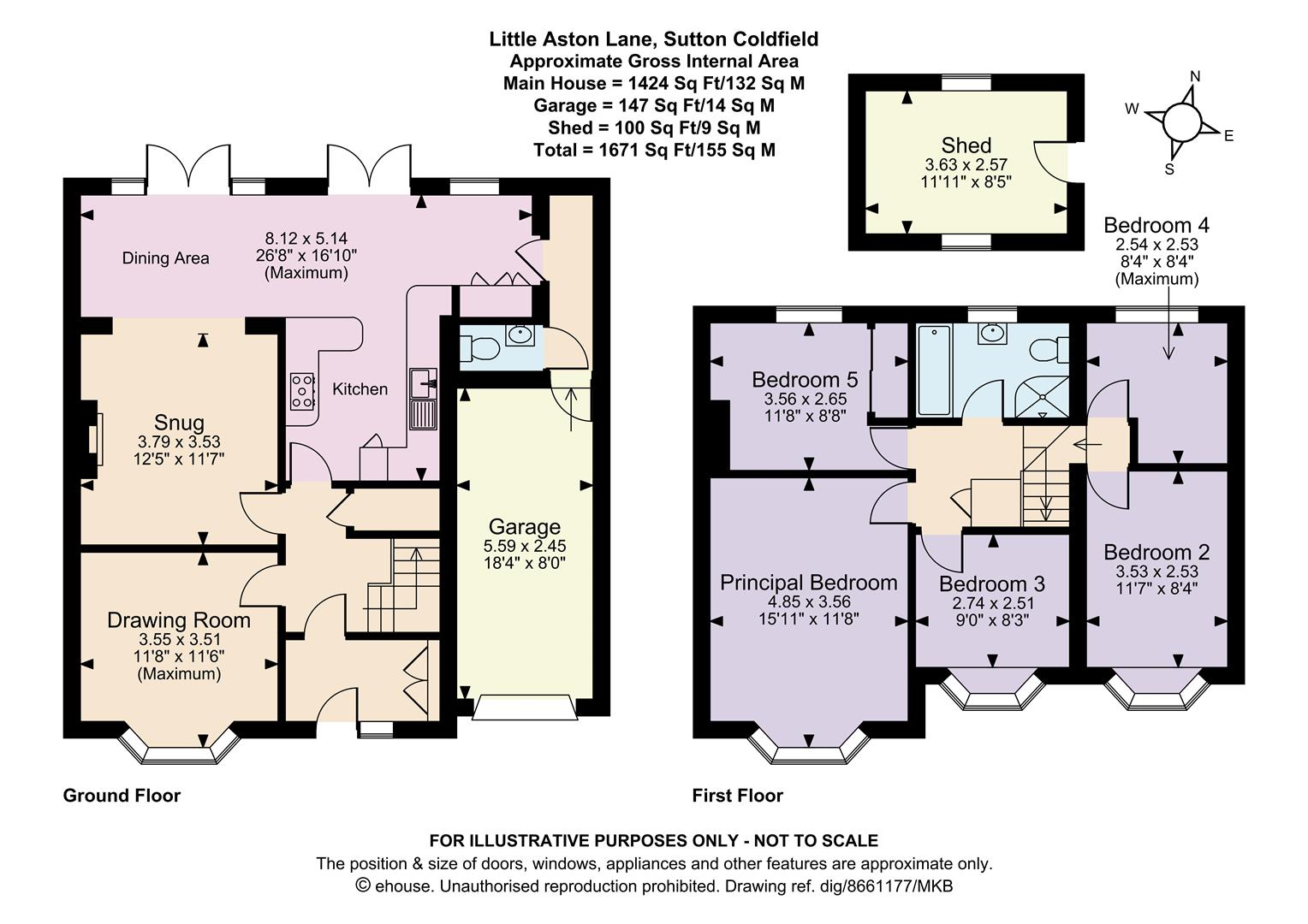 Approximate total floor area: 1671 Sq. Ft or 155 Sq. Meters