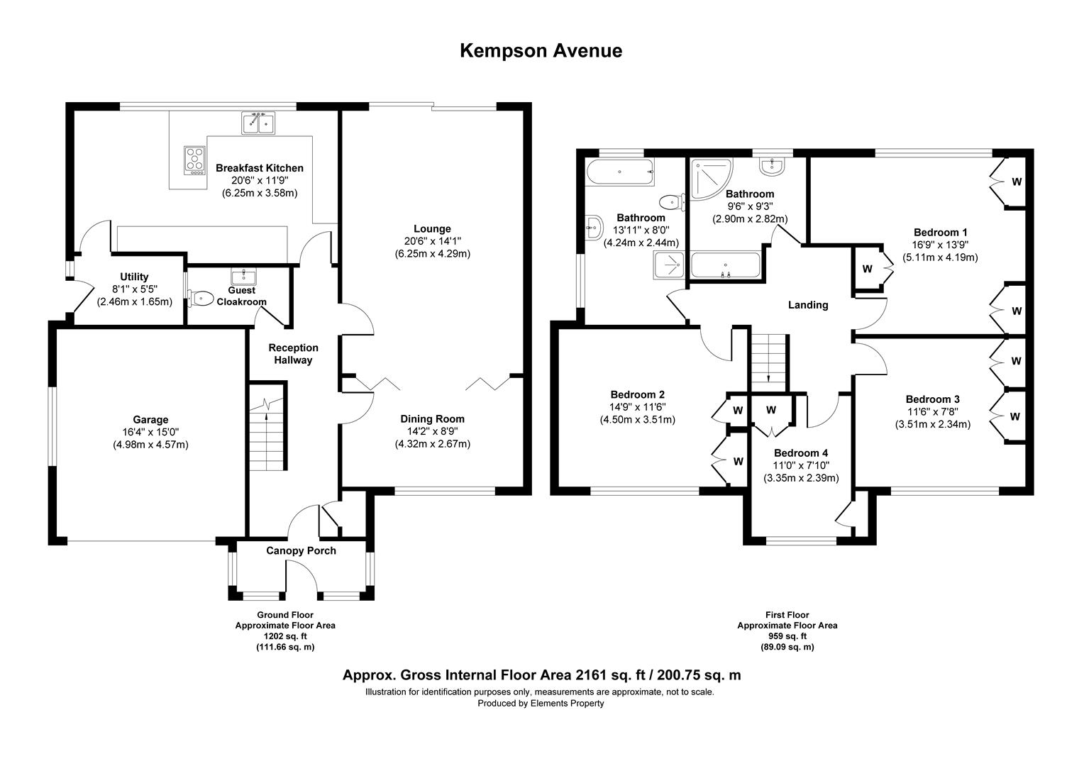 Approximate total floor area: 2161 Sq. Ft or 200.75 Sq. Meters