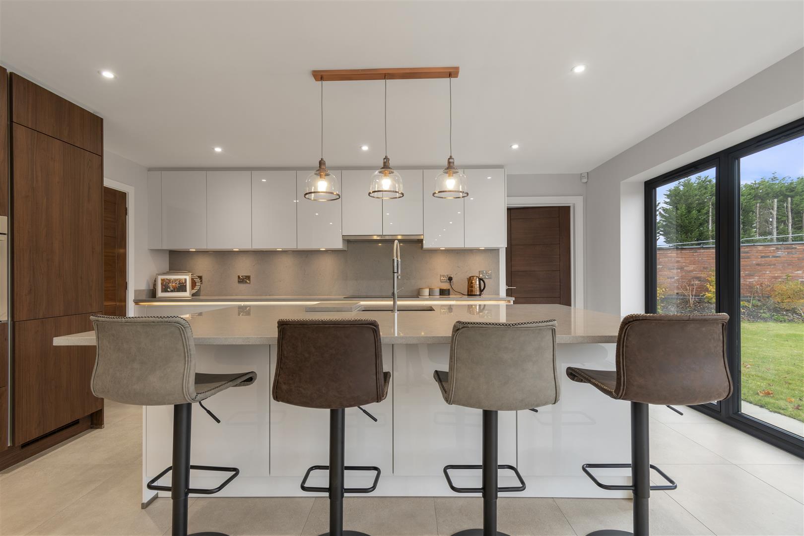 • High specification German kitchen with Neff appliances, quartz surfaces and large island