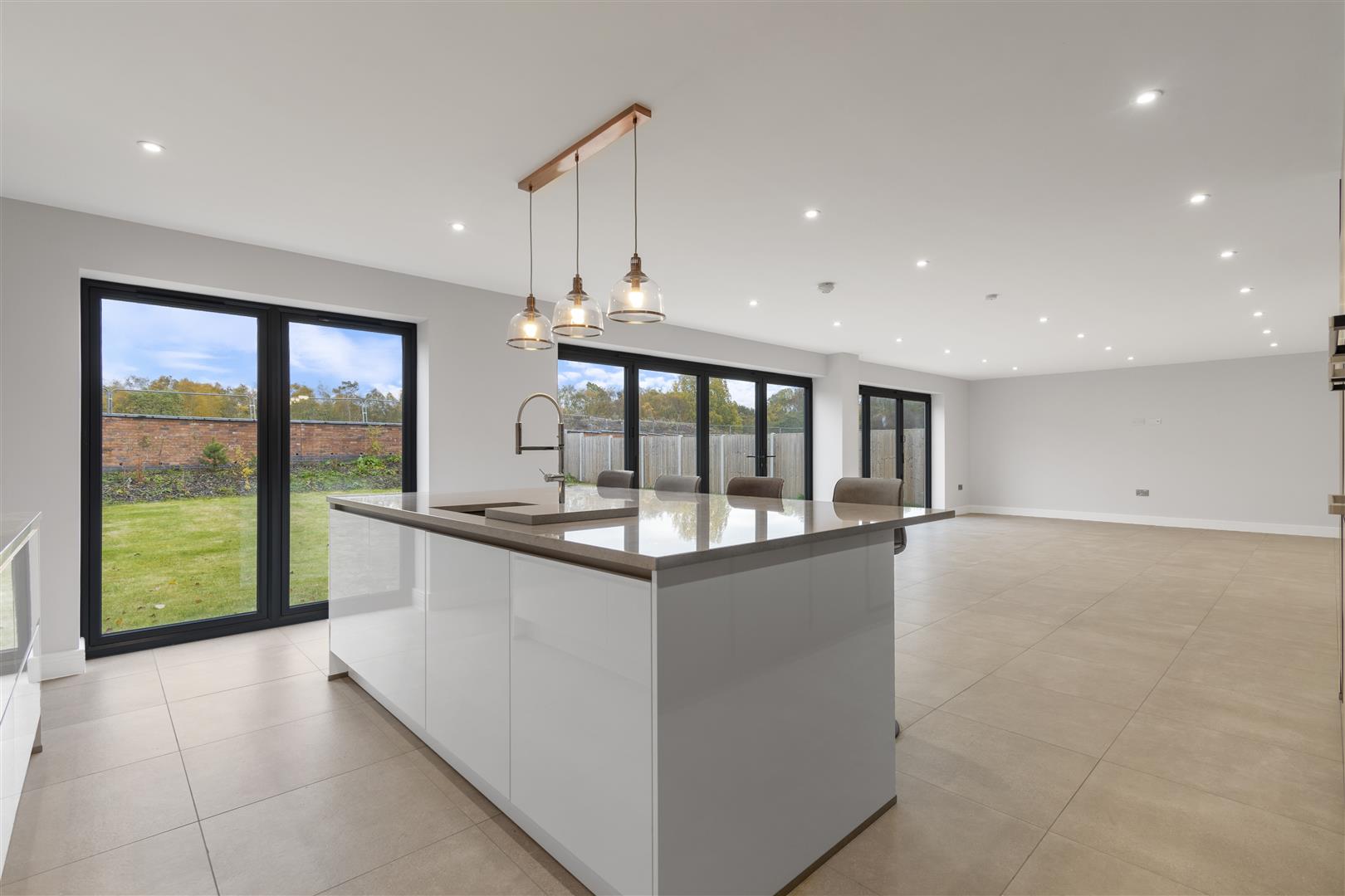 • Forty foot open plan kitchen, dining and family room with bi fold doors to the rear garden