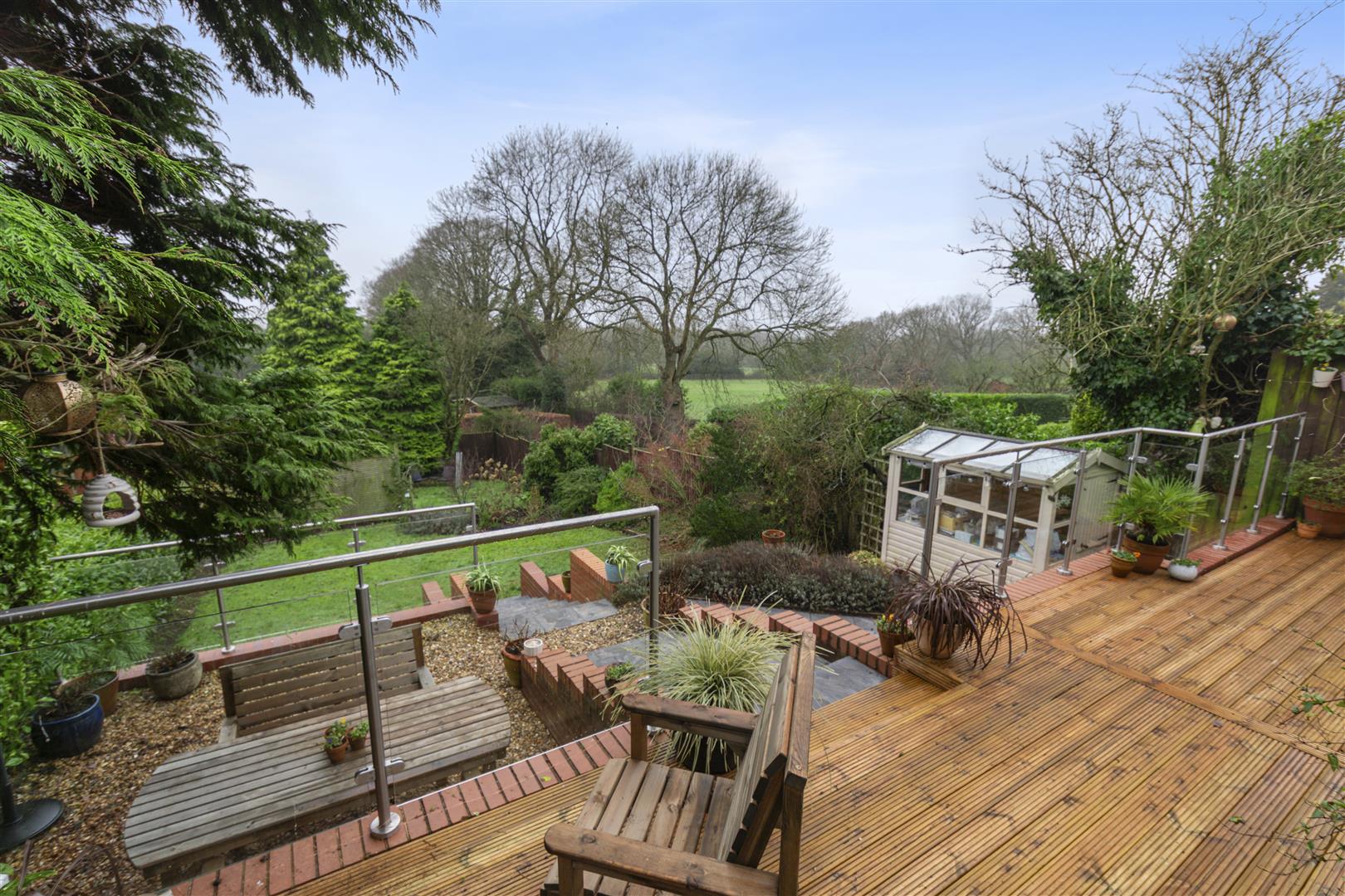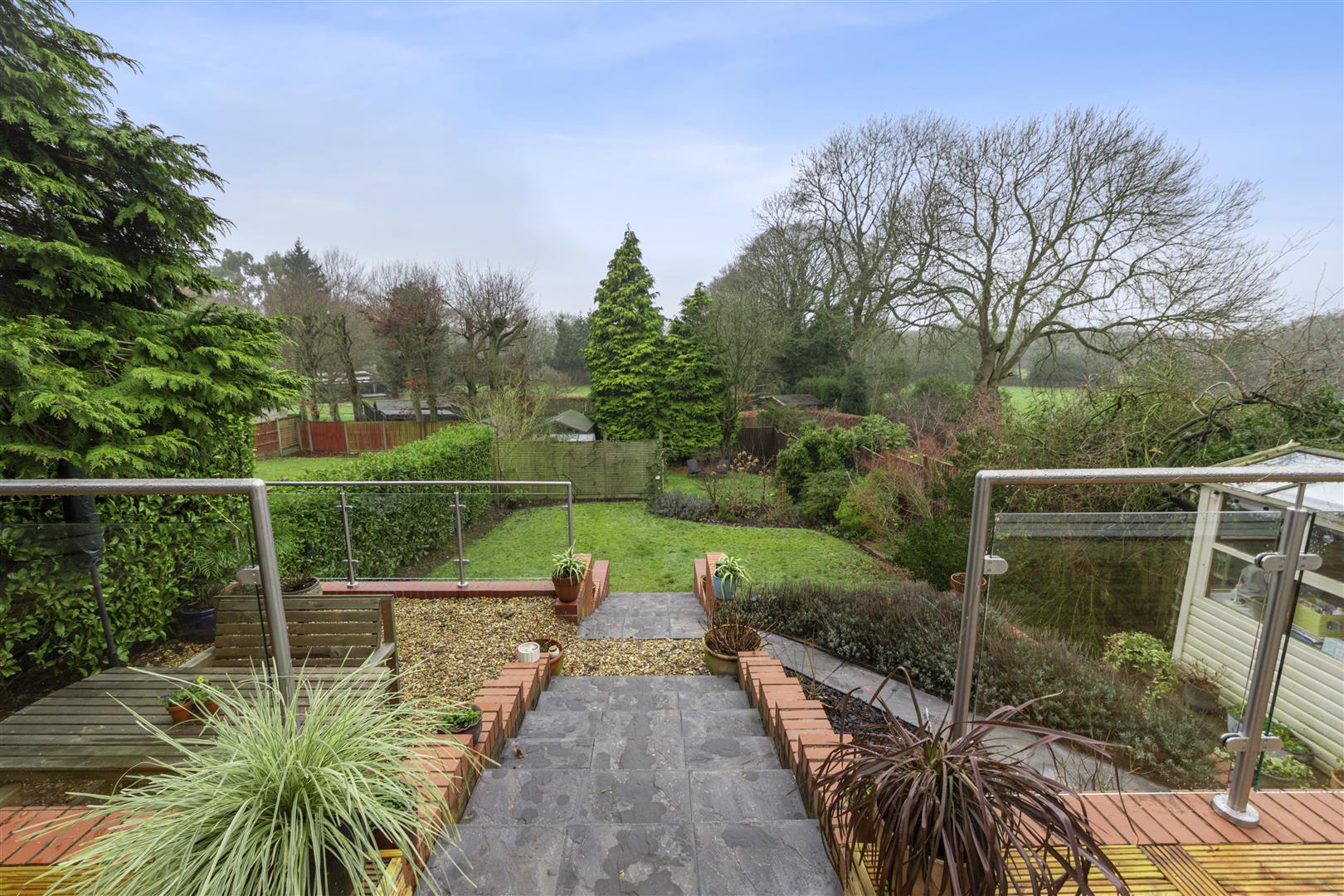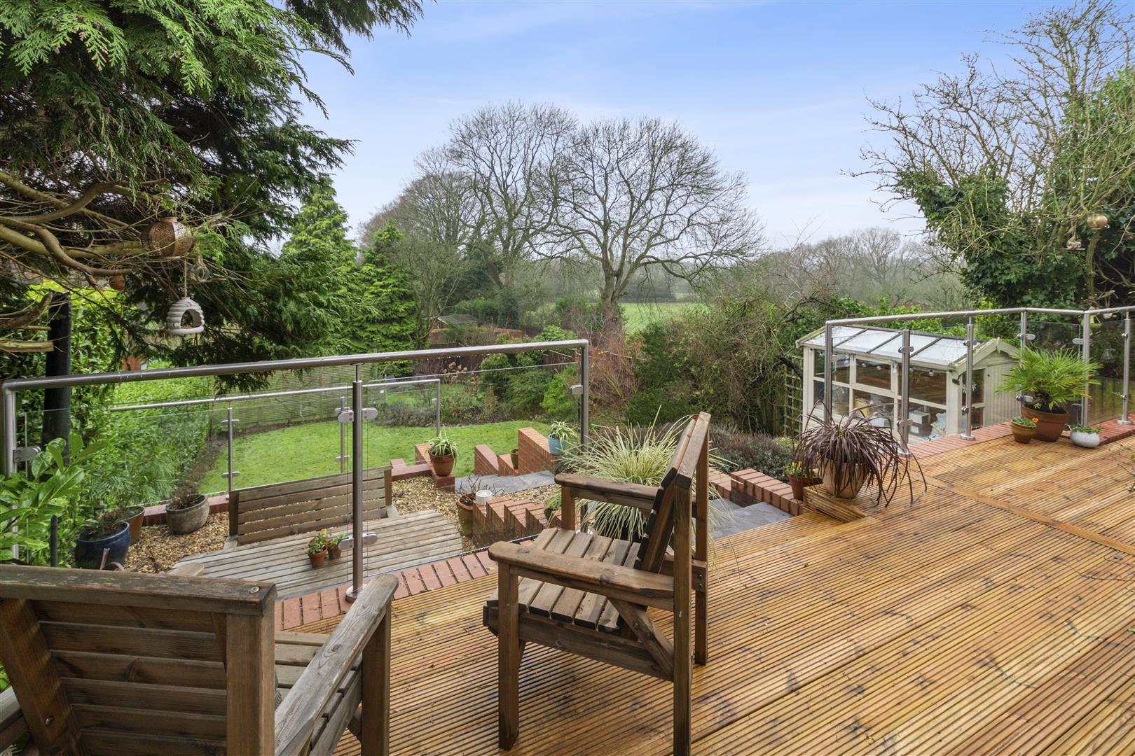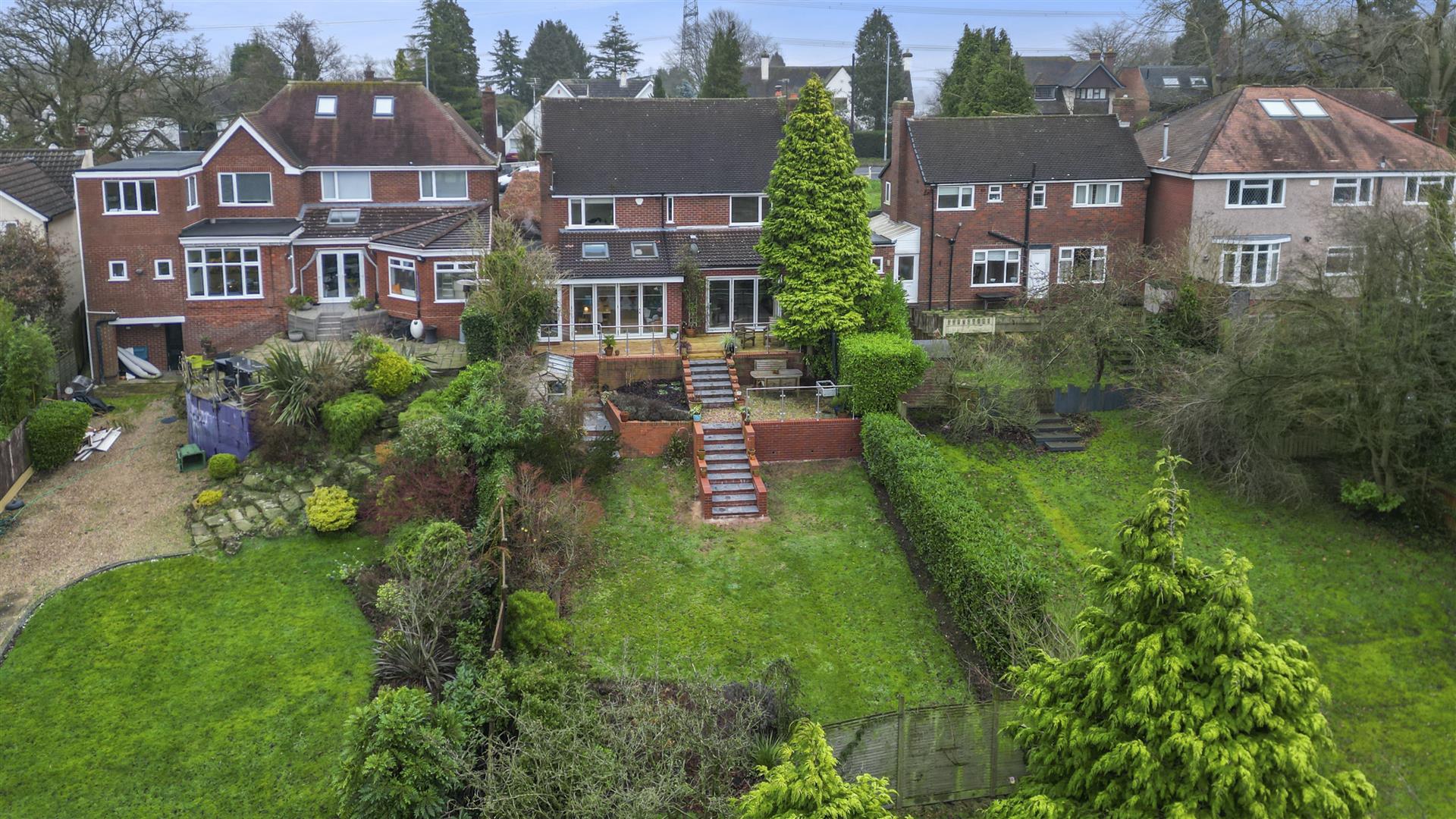 Upstairs provides a principal bedroom with ensuite, three further bedrooms, a family bathroom and additional WC. Outside, the beautifully landscaped southwest-facing rear garden enjoys a sunny aspect throughout the day, arranged over multiple levels with terraces, lawn, mature planting and outbuildings, creating an ideal setting for outdoor living and entertaining.
