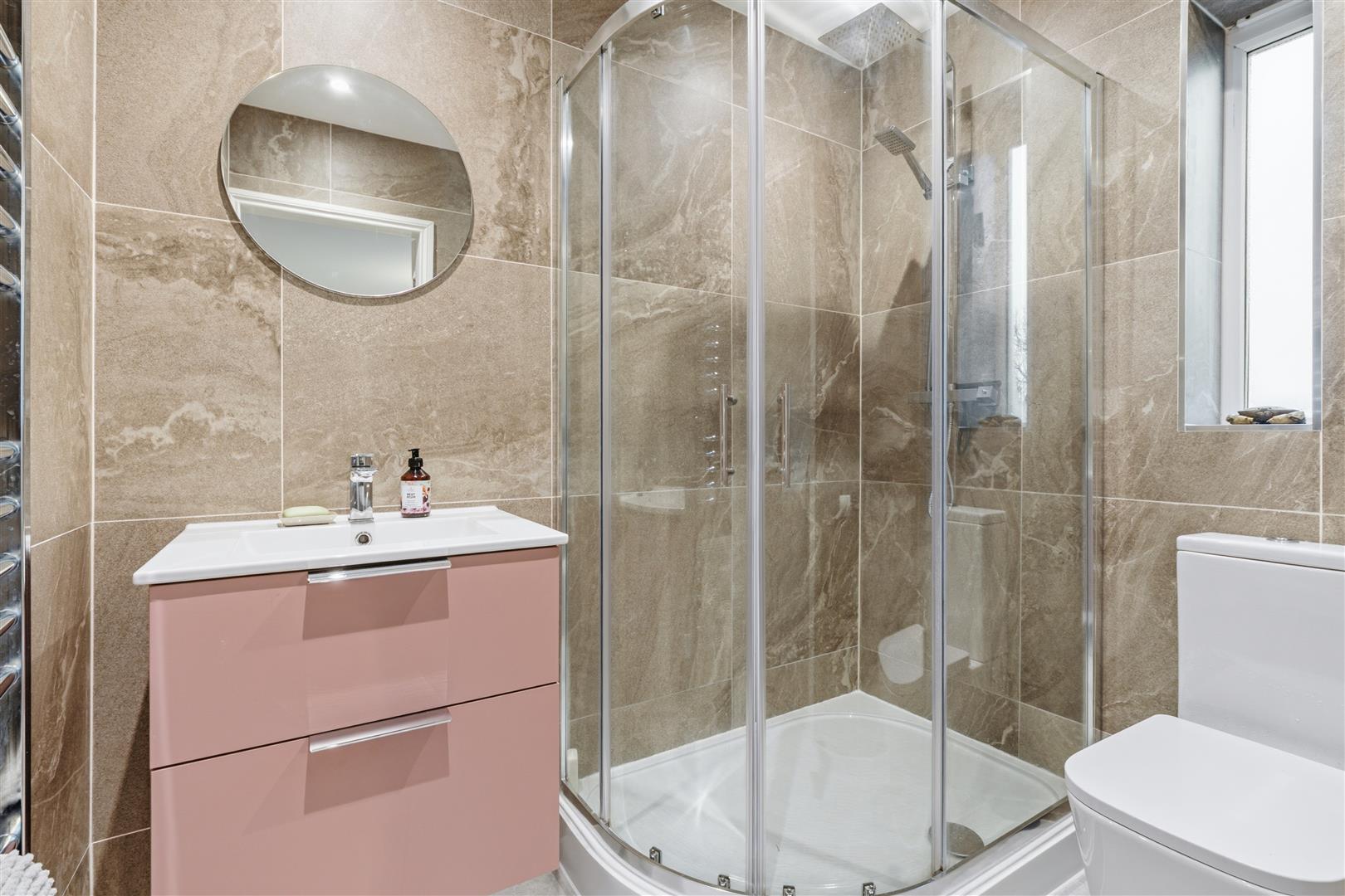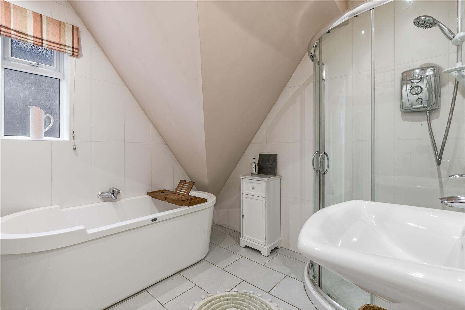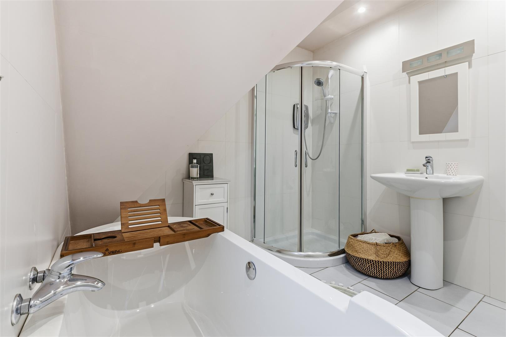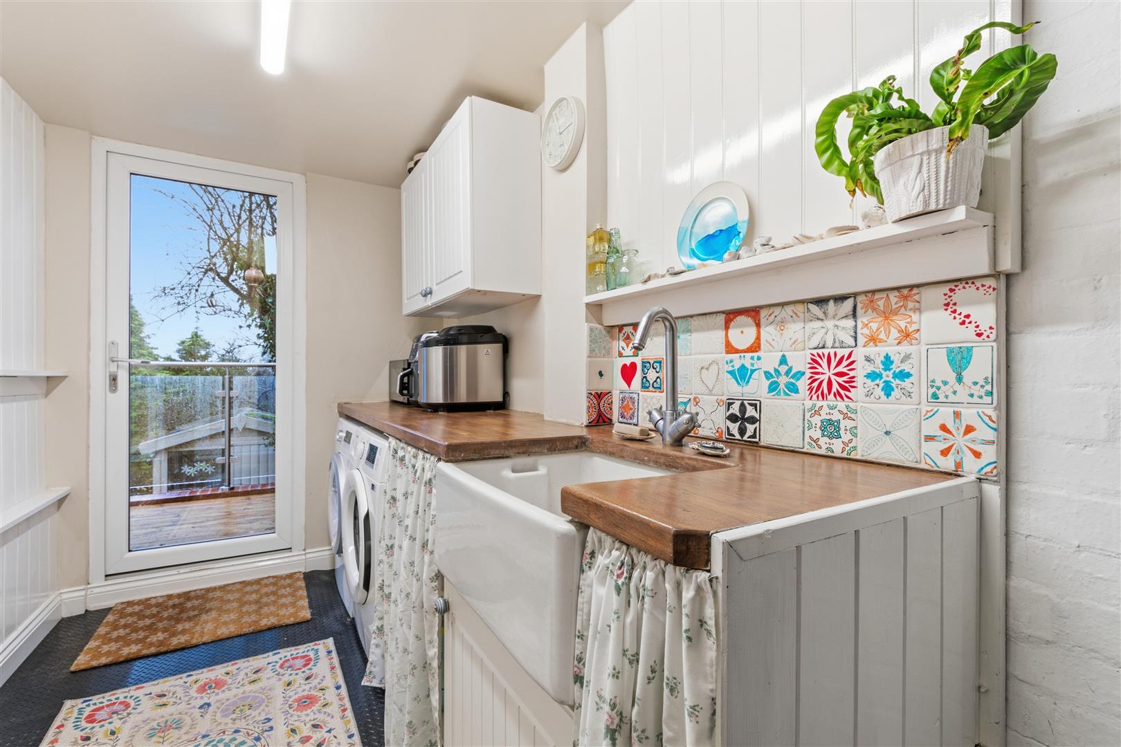 Upstairs provides a principal bedroom with ensuite, three further bedrooms, a family bathroom and additional WC. Outside, the beautifully landscaped southwest-facing rear garden enjoys a sunny aspect throughout the day, arranged over multiple levels with terraces, lawn, mature planting and outbuildings, creating an ideal setting for outdoor living and entertaining.