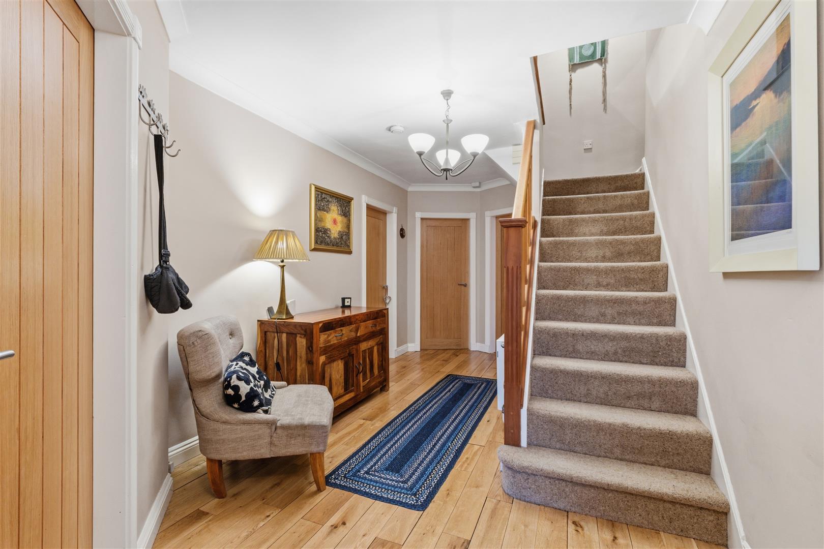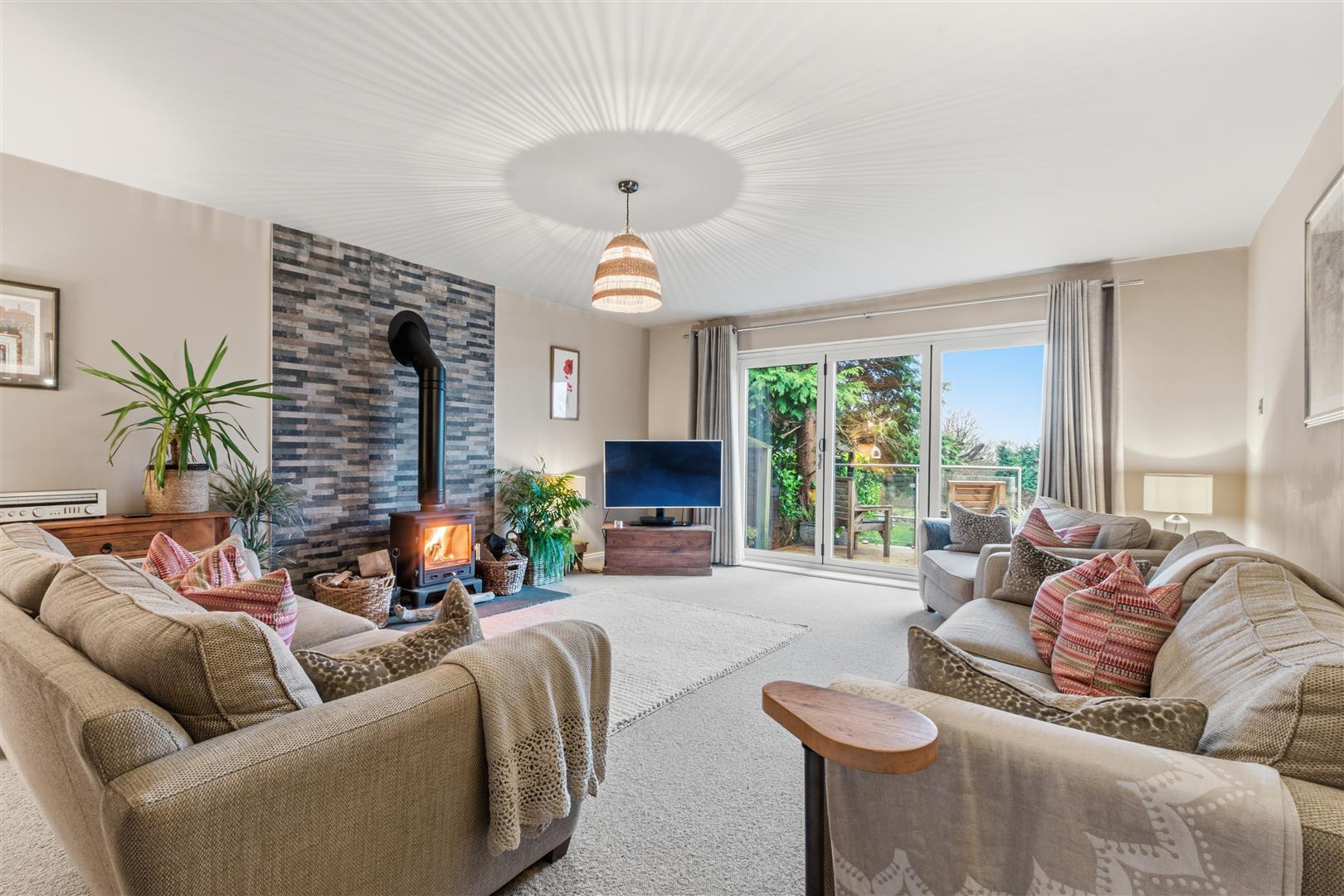 An exceptional family home offering stylish, well-balanced accommodation. Approached via a private gravel driveway, the house features elegant reception spaces including a study, sitting room with Clearview log burner, and a generous lounge opening via bi-fold doors to the terrace.